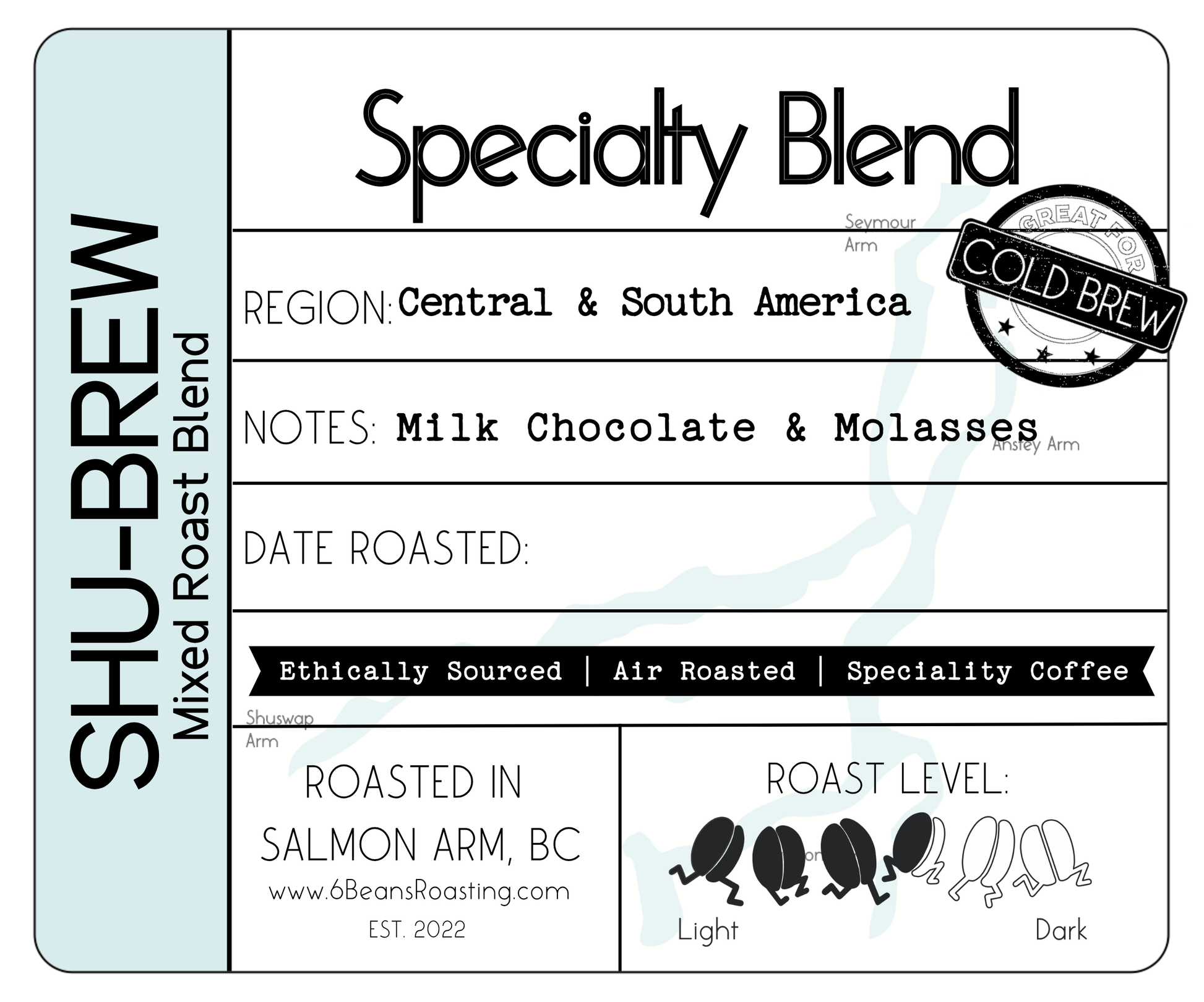 Note: Photo shown is a sample of the label. Please confirm that your selection matches your desired size and roast level.