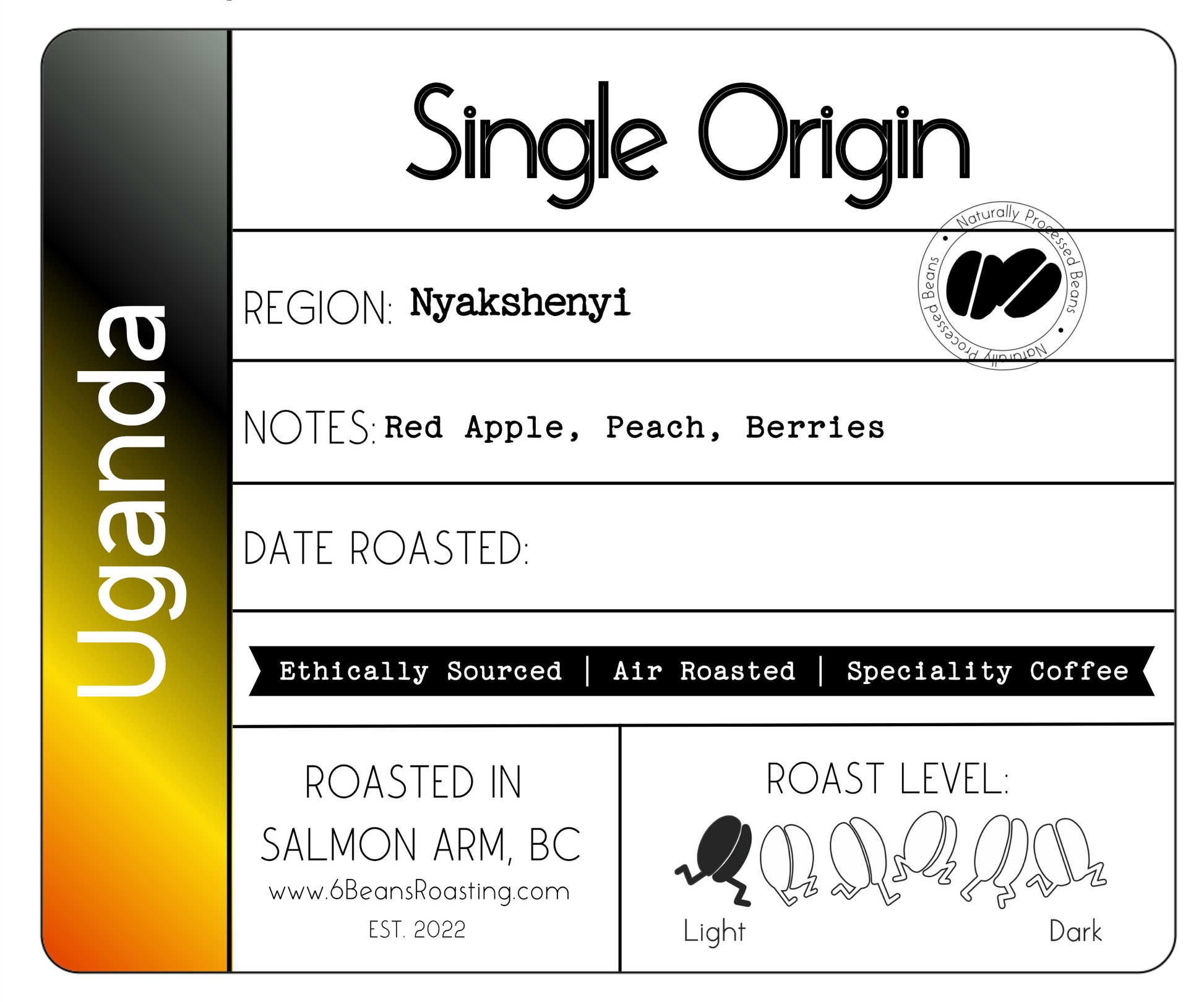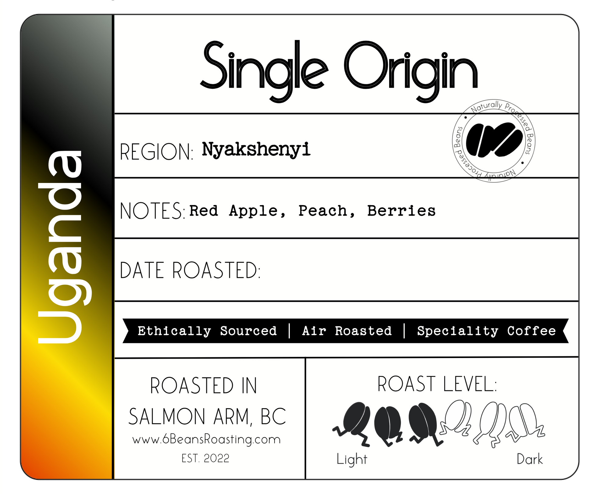 This natural process lot from Uganda’s Nyakshenyi region delivers a bright and well-rounded cup with crisp citrus and layered fruit sweetness. Sourced from smallholder farmers in the Kigezi mountains, this coffee is carefully floated, hand-picked, and dried on raised beds before final processing at Kingha Estate.